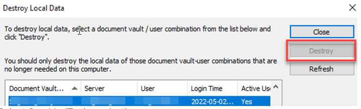 5. Destroy local data by selecting on the vault and click “Destroy”
