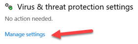 2. Go to the section Virus & threat protection settings and click Manage settings:
