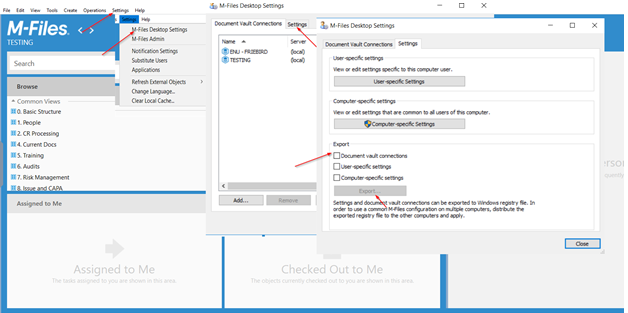 1. In the Desktop Client press the Alt key >Settings> M-Files Desktop Setting>Settings